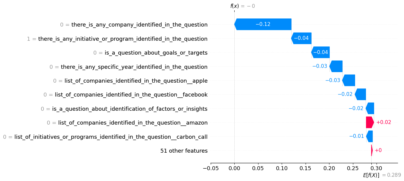 shap.waterfall_plot(shap_values[index])The generated plot is: