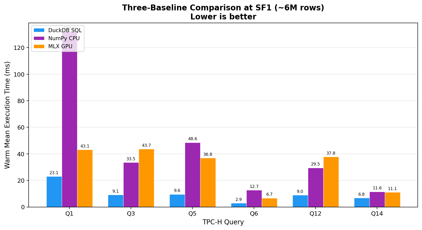Benchmark: MLX on analytical (non-ML) workloads - 6 TPC-H queries on M4 #3139