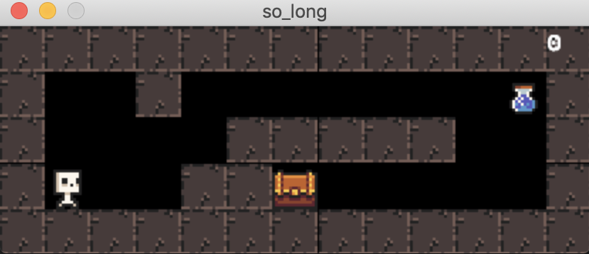 Once the map is checked and parsed, the minilibX loads the sprites, does the first render and the main game loop is started. The game is not in real-time and renders occur when the player moves.