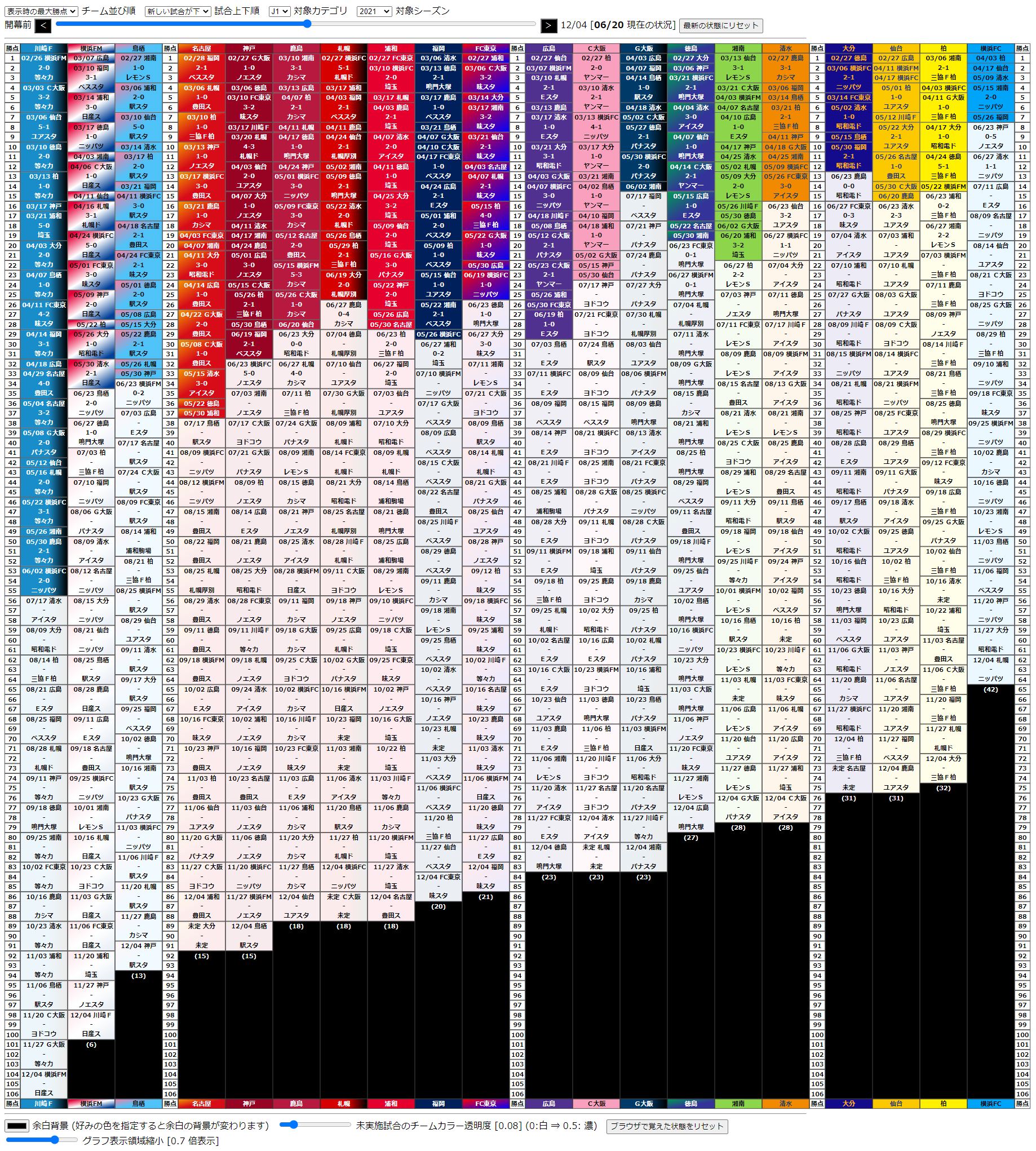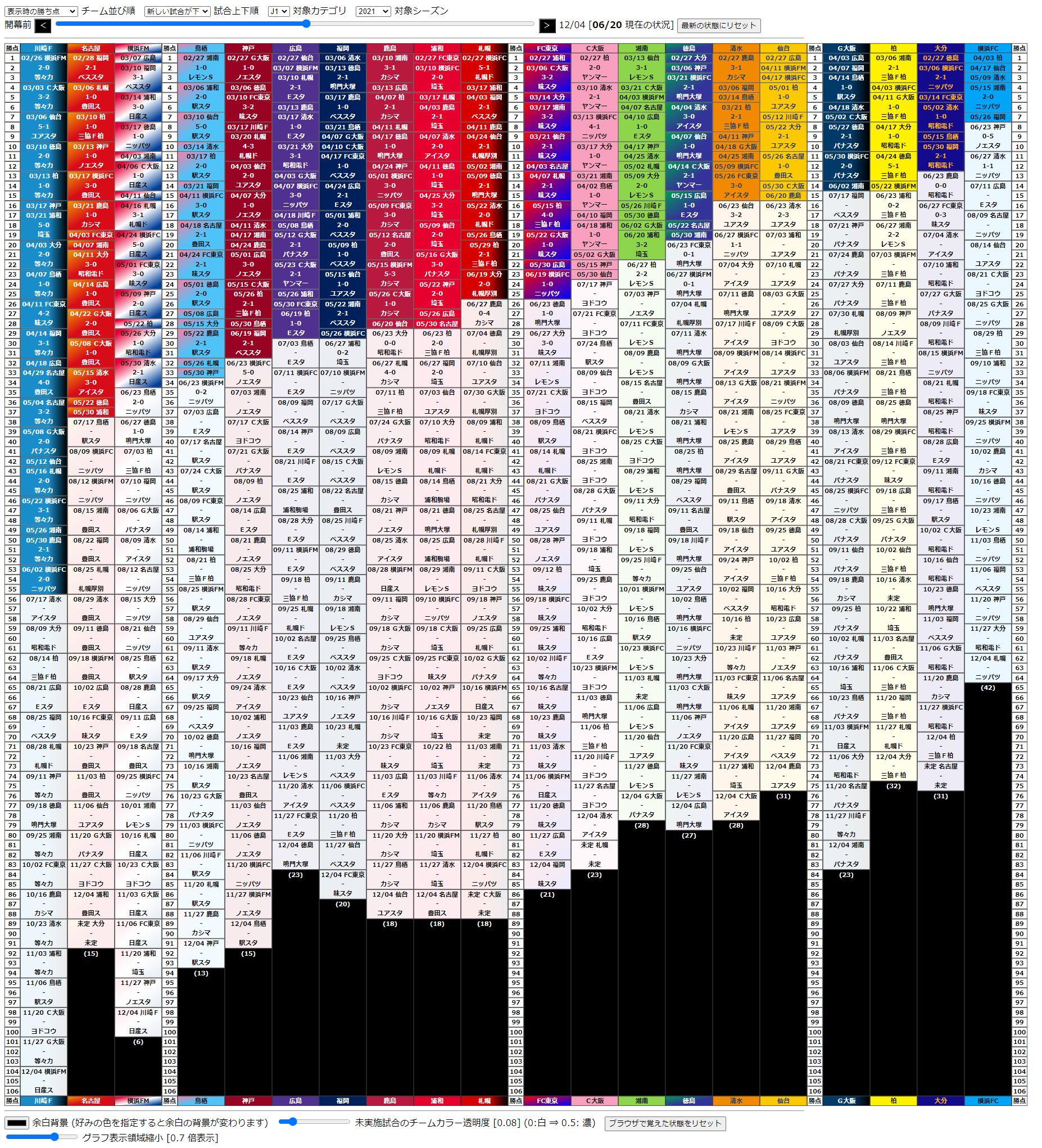 表示も、開幕前から最終節まで (もちろん、まだやってない試合の結果は未定のままです) スライダーで戻してみることもできます。