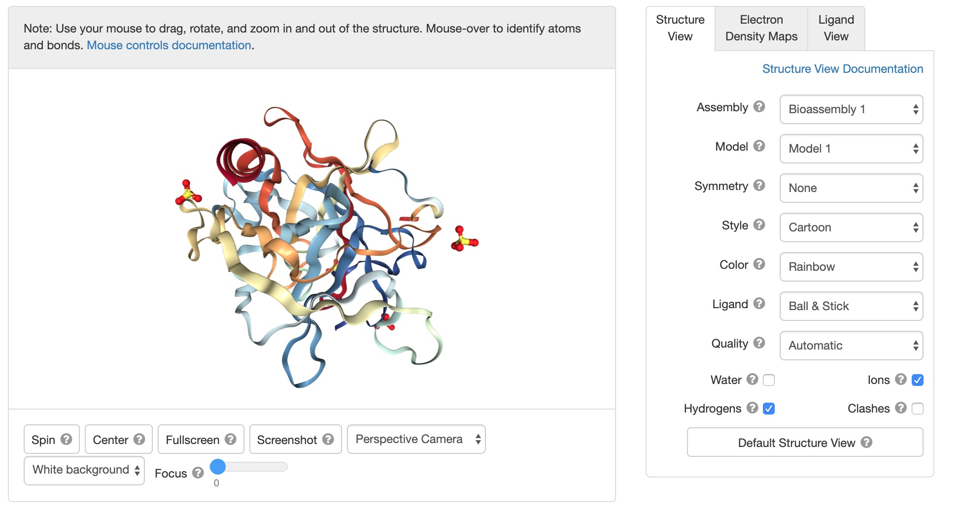 Our interface will end up being pretty different from the PDB interface since we will likely high a bunch of these options under the gear as visualization settings