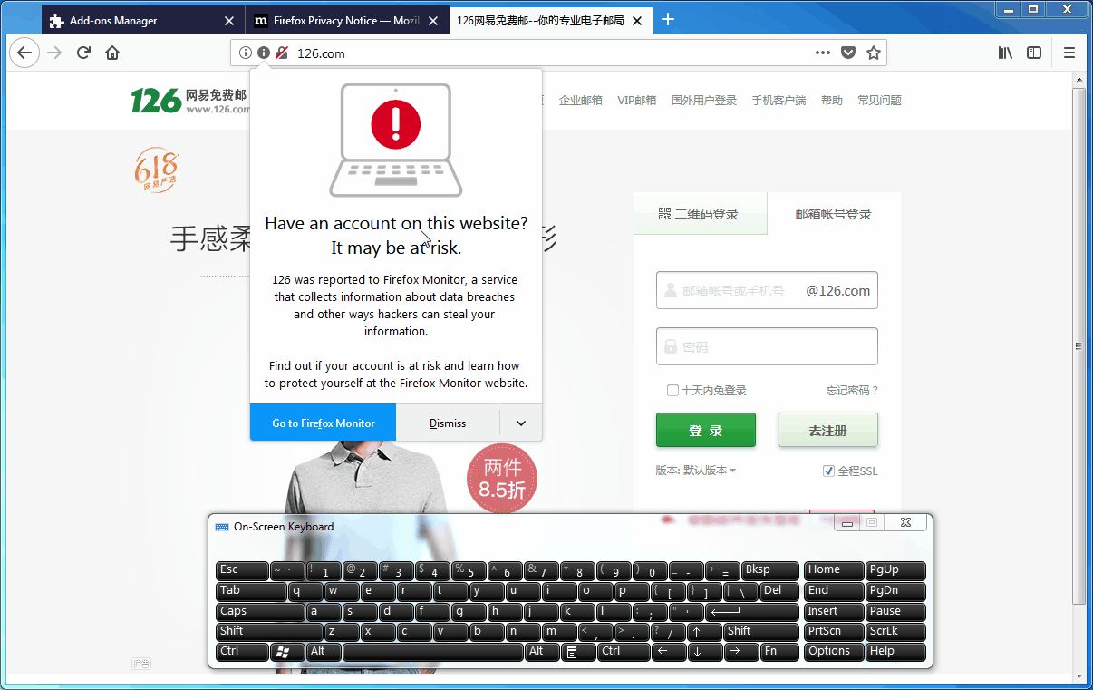 2. Navigate to a breached website (eg: https://126.com).