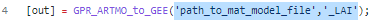 4- Open overall_model_gee.txt. and copy its content. Paste it at the beggining of the GPRPredictedMean script in the GEE repository.