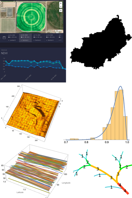 This first step of this section is to find a way to isolate rivers from a Map; we can do this through polygon clusters and color recognition. VectorMinimal allows us to convert individual components on the map into manipulable polygons. GeoBoundingBox gives the coordinates of the bounding rectangle enclosing the extracted polygon. GeoGraphics simply gives the map of all said polygons in the region.