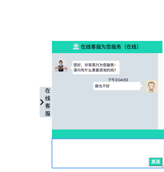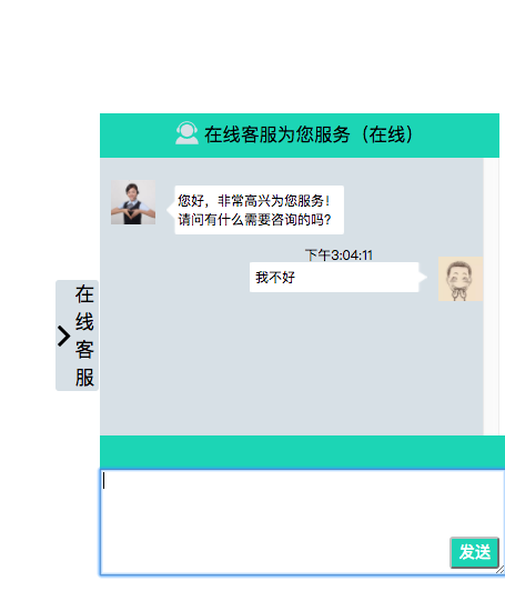 此时刷新客户端页面(127.0.0.1:8080),显示客服在线,可以发送信息啦