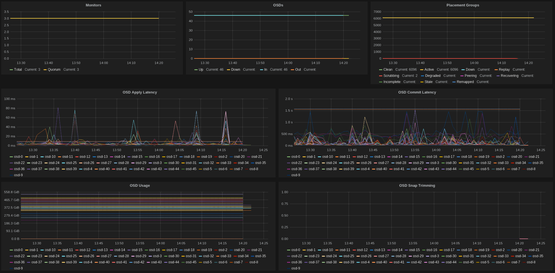 - ceph-<cluster>.mon.gauge.quorum (number of monitors in quorum)