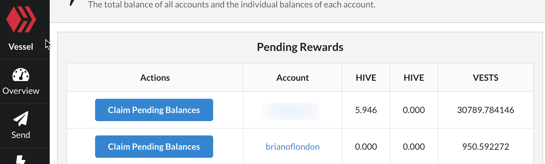 Would also be nice if the Vests column showed at least an approximation of Hive Power the way Keychain and other interfaces do before a claim.