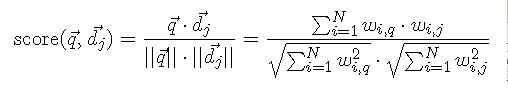 To get the final purcentage, I used this formula that computes angles between vector to know which one is the closest to the query (the closer is the difference between the query vector and the document vector, the better is the match):