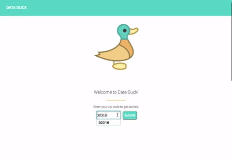 Date Duck is a web application that generates a ready made date based on the users location and a few selections.