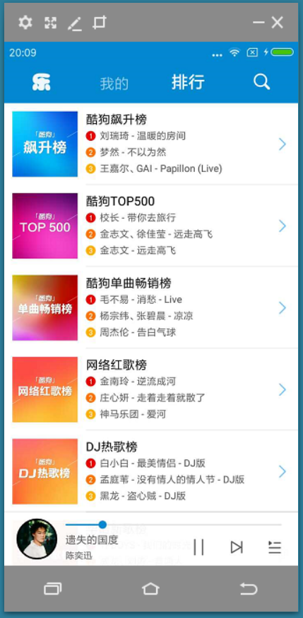 - 2018-01-22:去掉歌手写真界面的酷狗背景图片;程序异常关闭后,关闭所有界面;修复程序关闭后,通知栏还存在的问题。