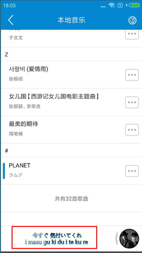 - 2018-01-27:修复主界面底部的右滑显示的双行歌词的换行问题。