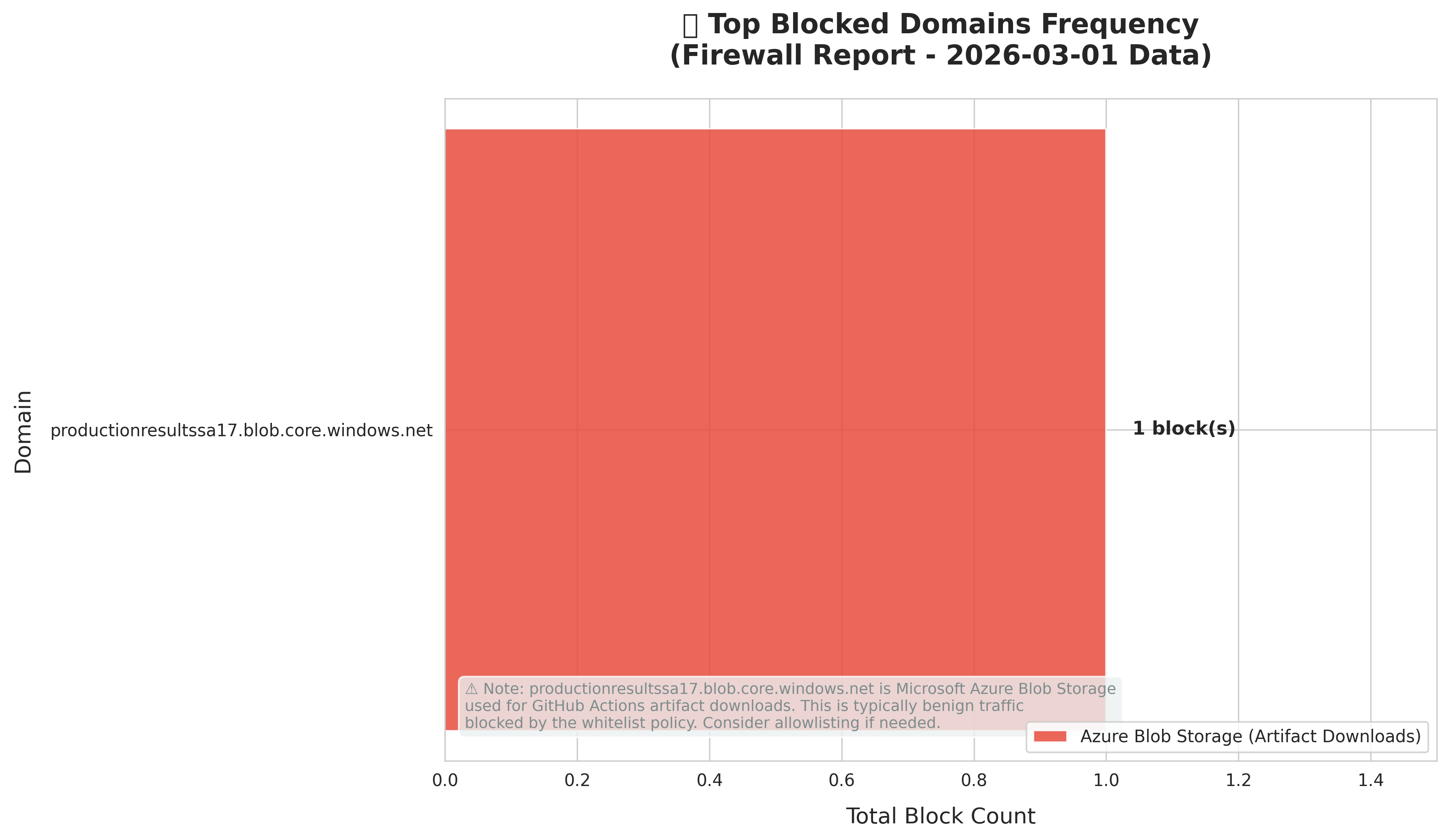 productionresultssa17.blob.core.windows.net) is an Azure Blob Storage endpoint used for GitHub Actions artifact downloads, which is expected to be blocked by the current allowlist policy.Key Metrics (2026-03-01 — Last Available Data)