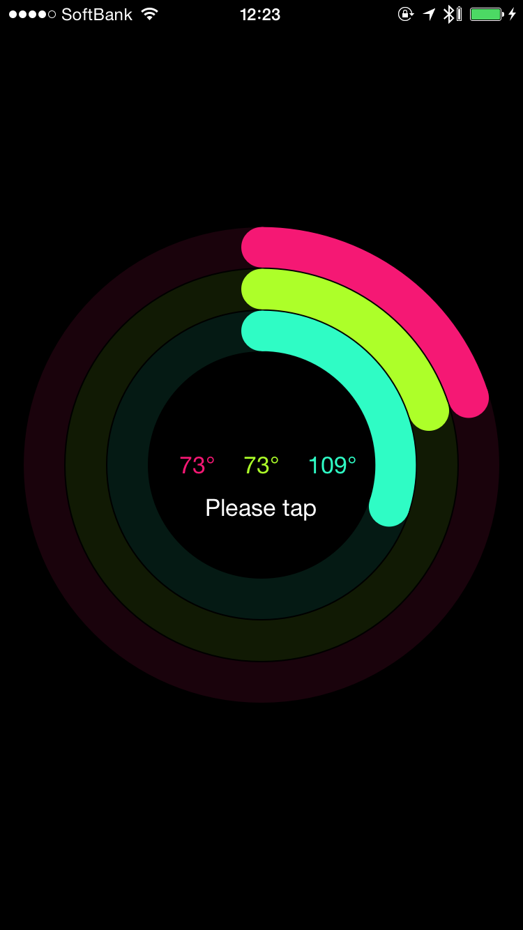 CircleAnimation is a demonstration that uses a iOS8 SDK. It will reproduce the graph behavior of Activity app iOS8. - CircleAnimation はiOS8 SDKを使ったデモンストレーションです。iOS8 のActivityアプリのグラフ挙動を再現します