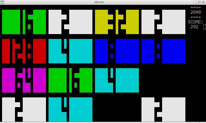 $ easy_install curses-2048$ 2048If your terminal has support for 256 colors you will see colors mimicking the original game, something like the screenshot above. If your terminal only supports 16 colors, you will se something like this: