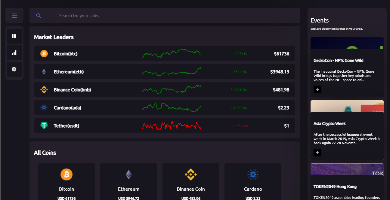 This is a UI implementation of a Crypto Dashboard. The project was bootstrapped with Create React App.