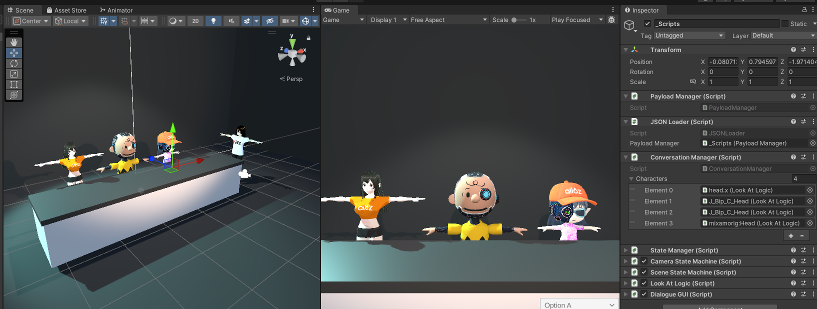 • Single AI for all scripts or multiple AIs for each character.