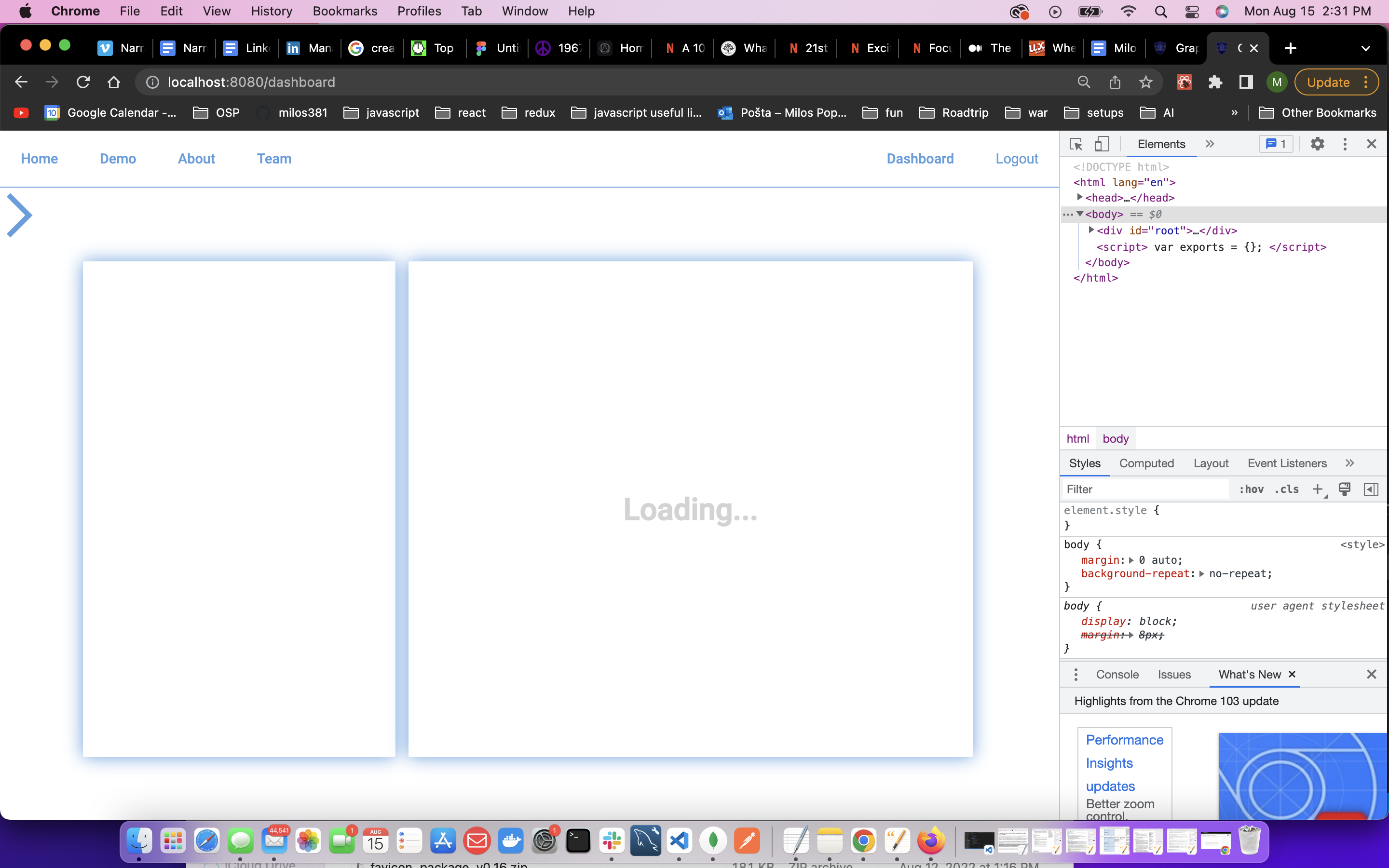 Fixed minor styling issues - margin and padding on landing page, arrow positioning on dashboard page, wrapped the word "loading..." into h3 and centered it