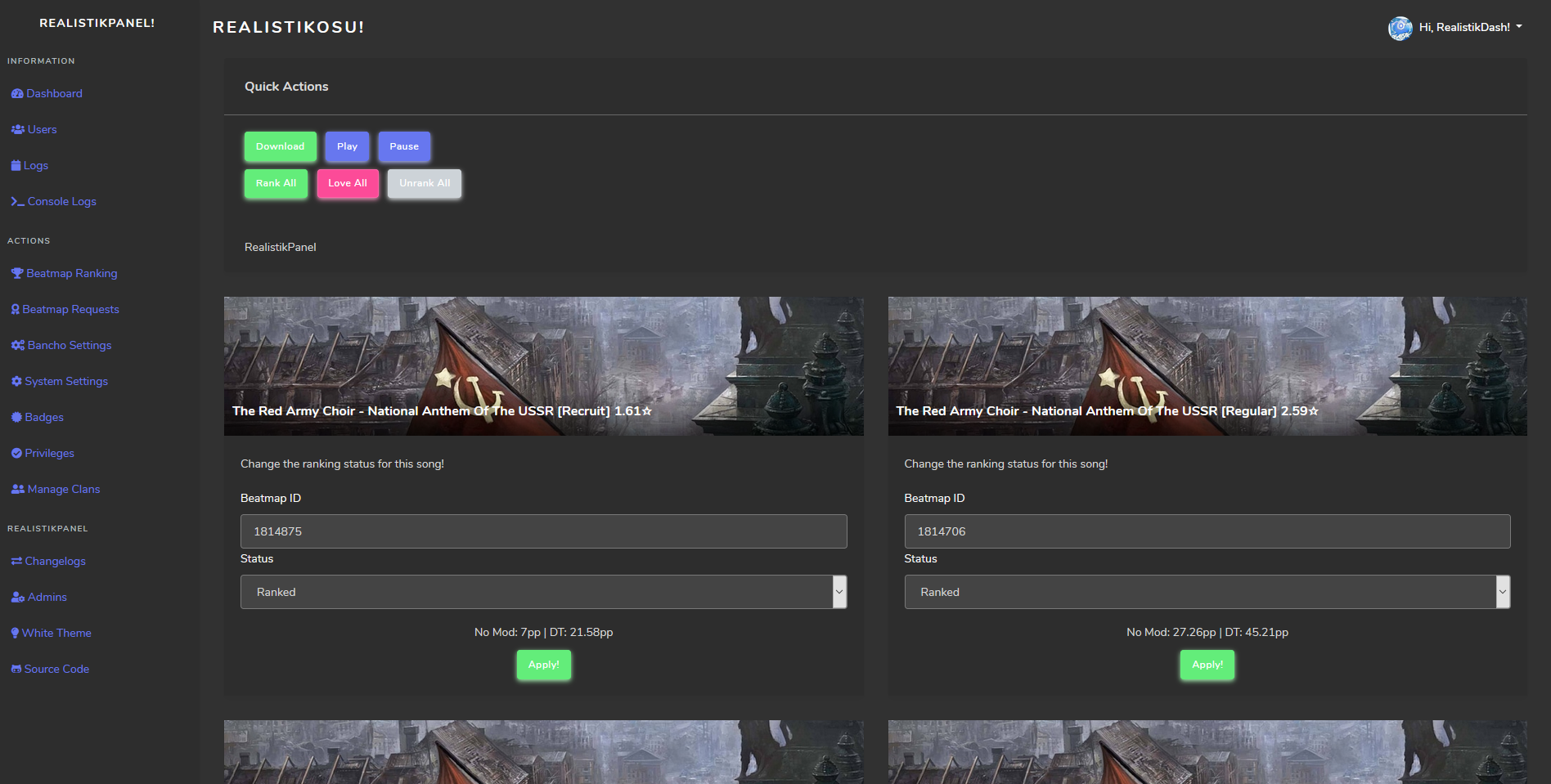 The modern admin panel for osu! private servers!