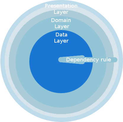 Following the dependency rule, the architecture is layered as follows: the presentation layer (the view, the presenter, the model), the domain layer and the data layer.