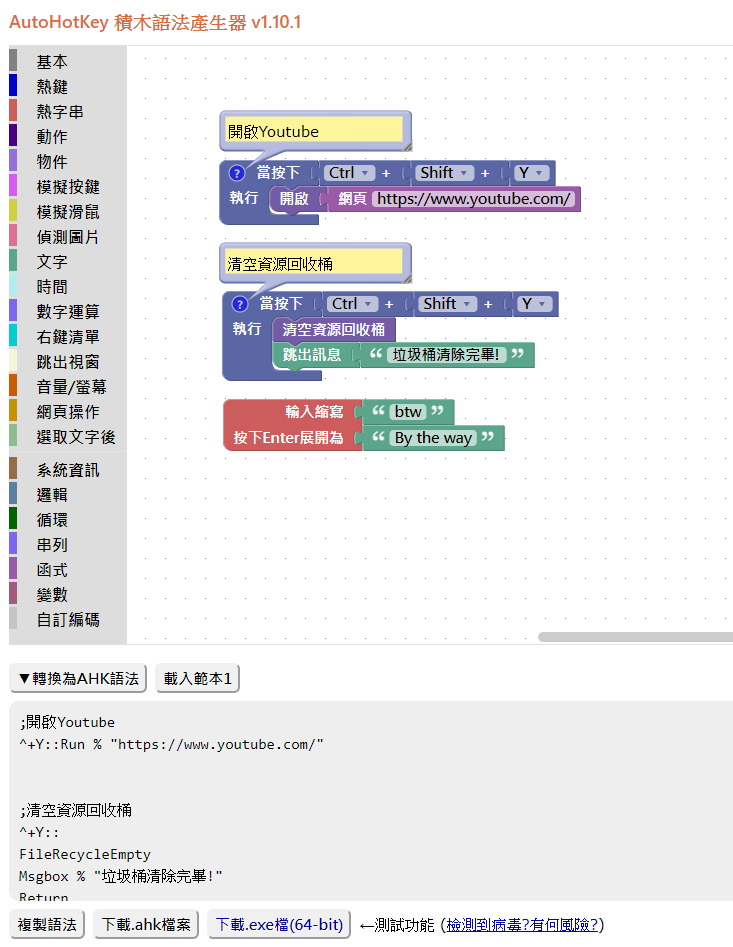 使用 Google Blockly 的拼圖引擎撰寫製作AHK腳本