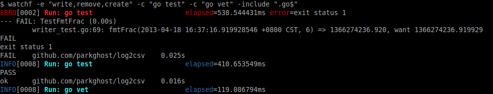 watchf -e "write,remove,create" -c "go test" -c "go vet" -include ".go$"