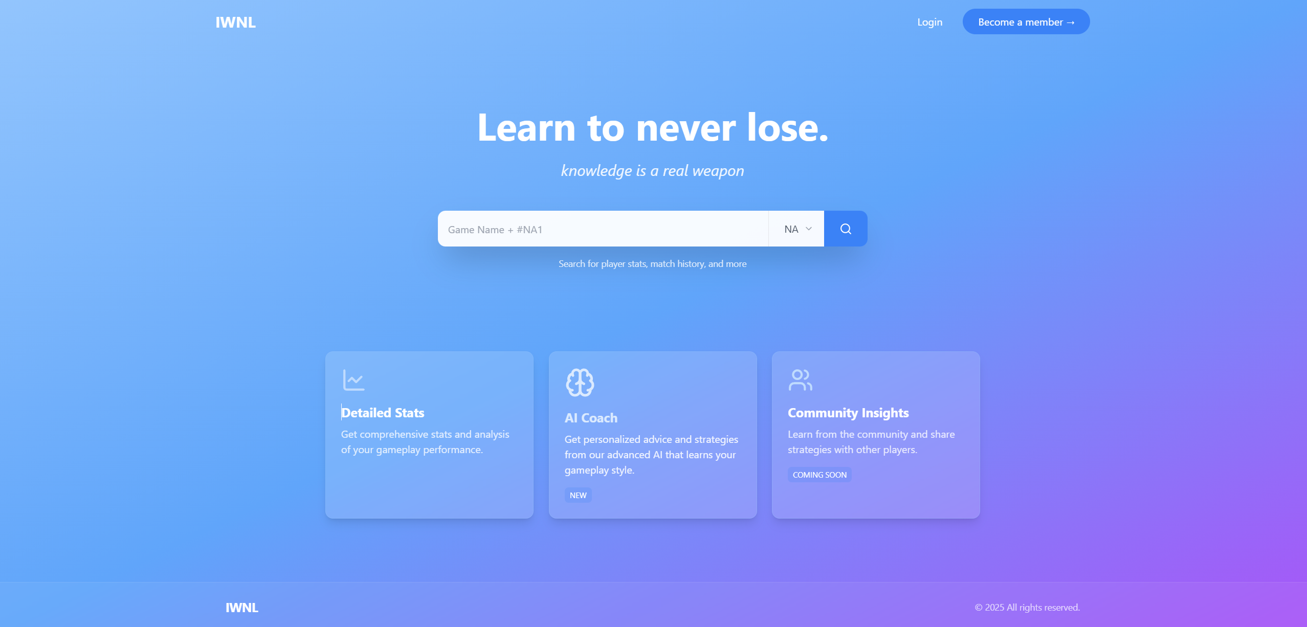 IWNL is a League of Legends stat tracker built with Remix. This app allows players to search for summoner stats, view match history, and access detailed gameplay analysis. Whether you're looking to improve your skills or simply track your performance, IWNL has you covered.