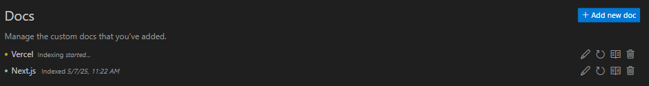 After that - you will do the same with Vercel's documentation. After which you should see: