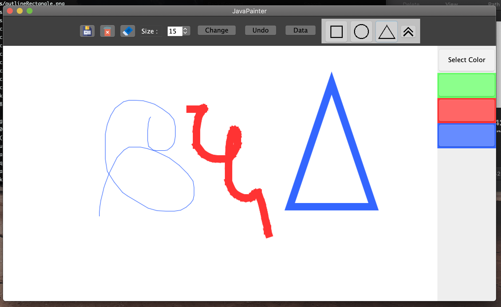 - A change button that is currently nessecary to change the size of the paint brush according to the size in the drop box.