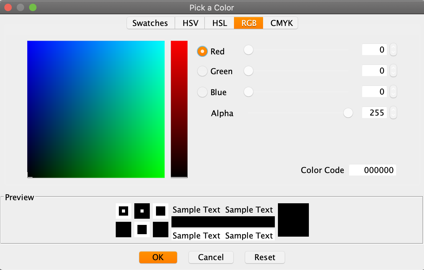 You are able to select a RBG colors and creates a pallet of those recently used colors on the side of the window.