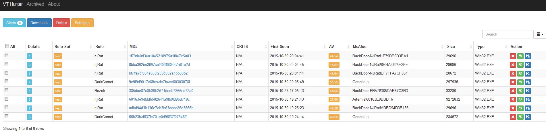 A web interface to manage VT alerts locally (pulls them down from VT). Make it easier to search, filter, view, etc. Also has ability to check files in Crits and soon to be MISP. Written in PHP.