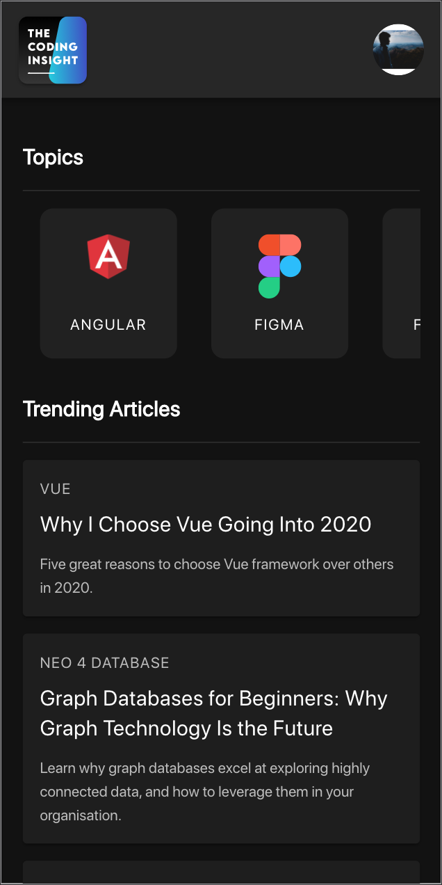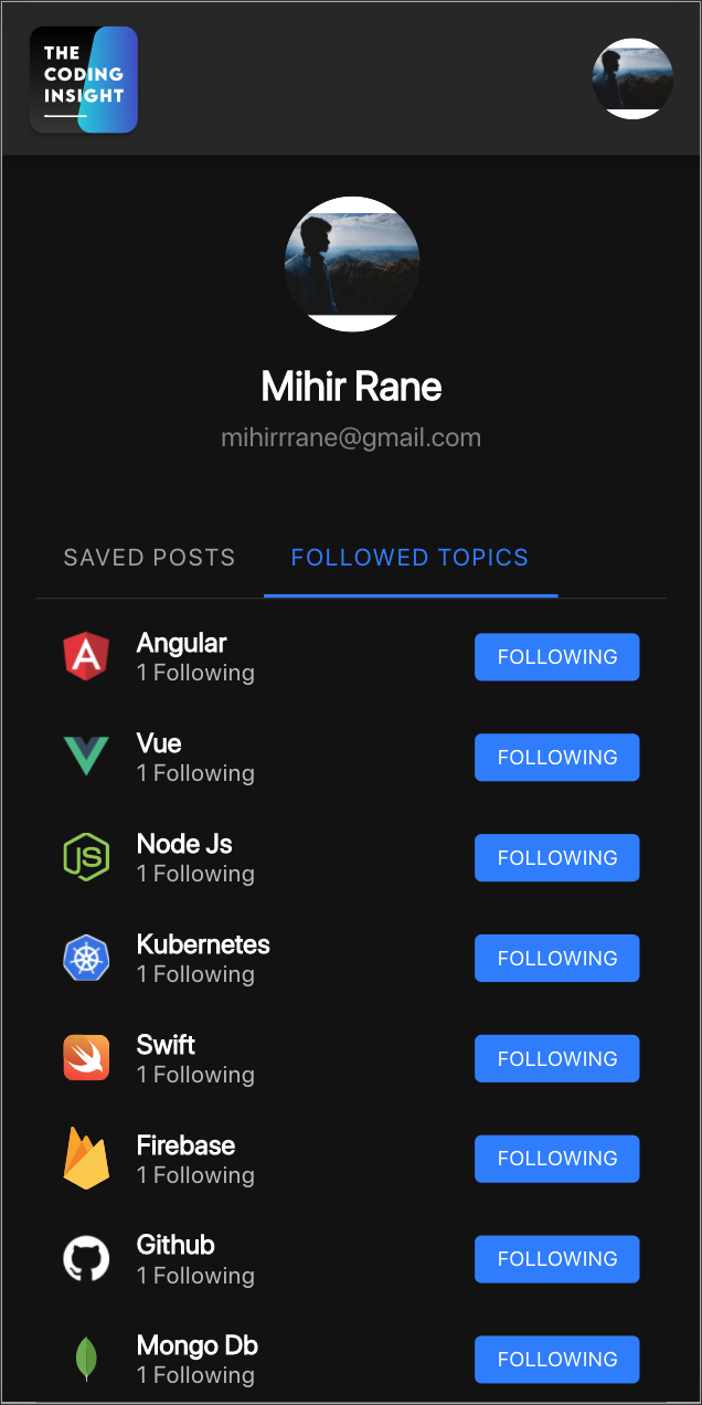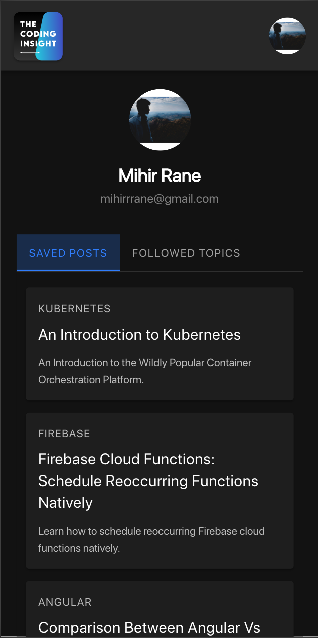 Blog articles are organised according to different topics. Users can register using Google sign in to follow these topics and checkout new content. Users can also like the blog articles and save them so that they can read them anytime later.