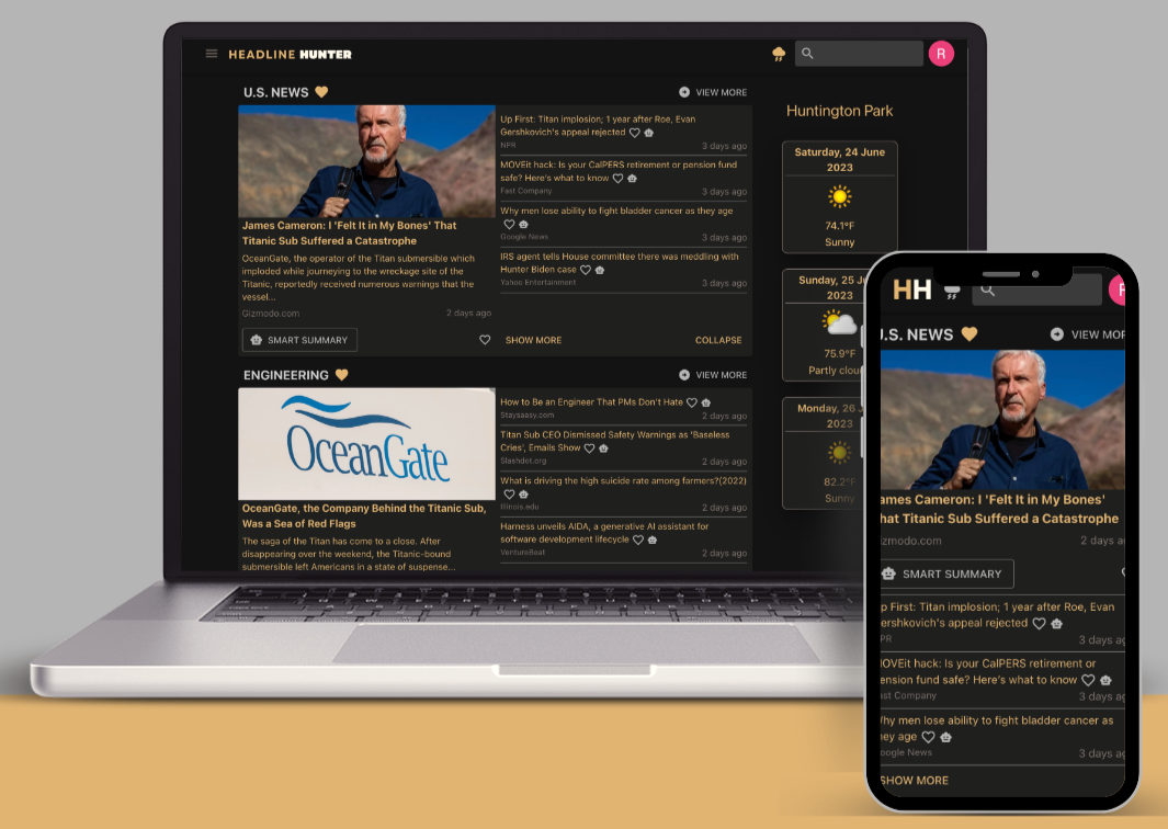 Check out Headline Hunter, a cool news site that brings together stories from lots of different sources and puts them all in one place. We use ChatGPT to allow you to summarize each article, so you can stay informed even when you're in a hurry!