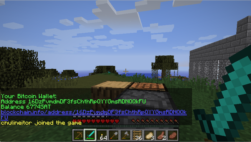 Additionally, players can send Bitcoin to other players via /send: