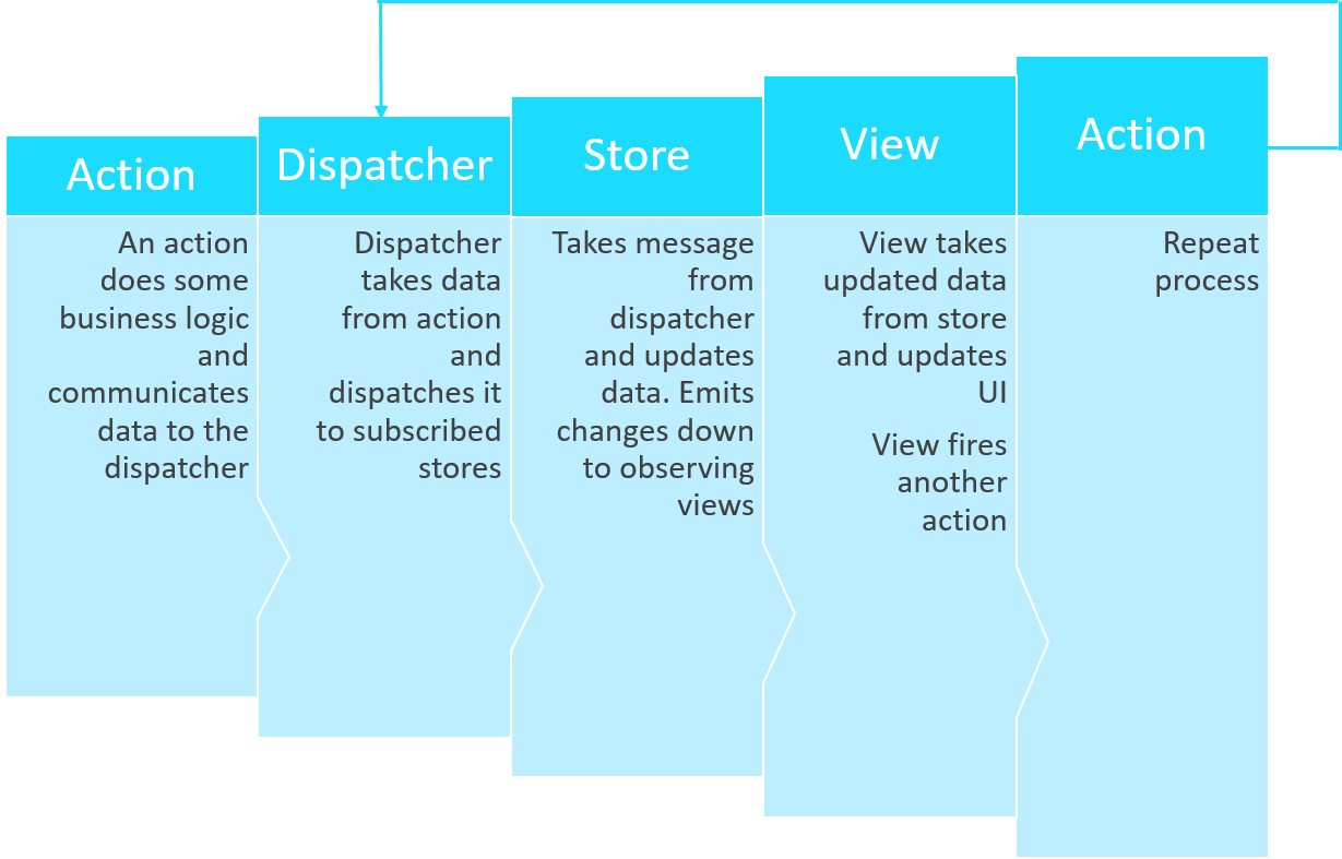 It was designed to solve issues with scaling out large code bases and data sets by forcing unidirectional data flows and trickle down events and bindings.