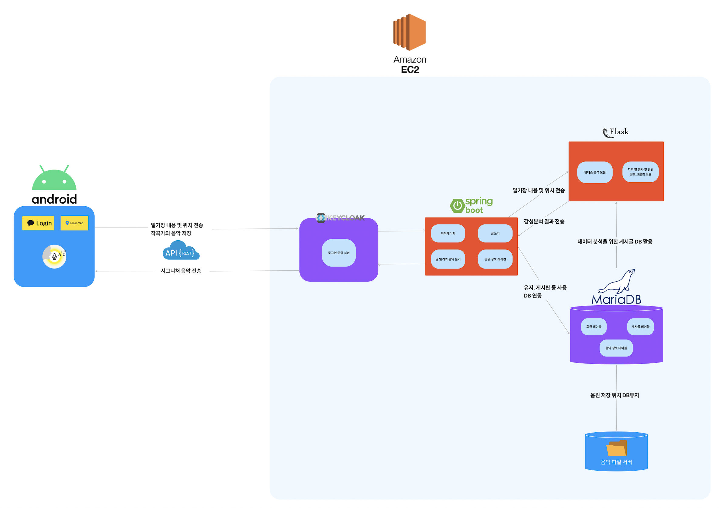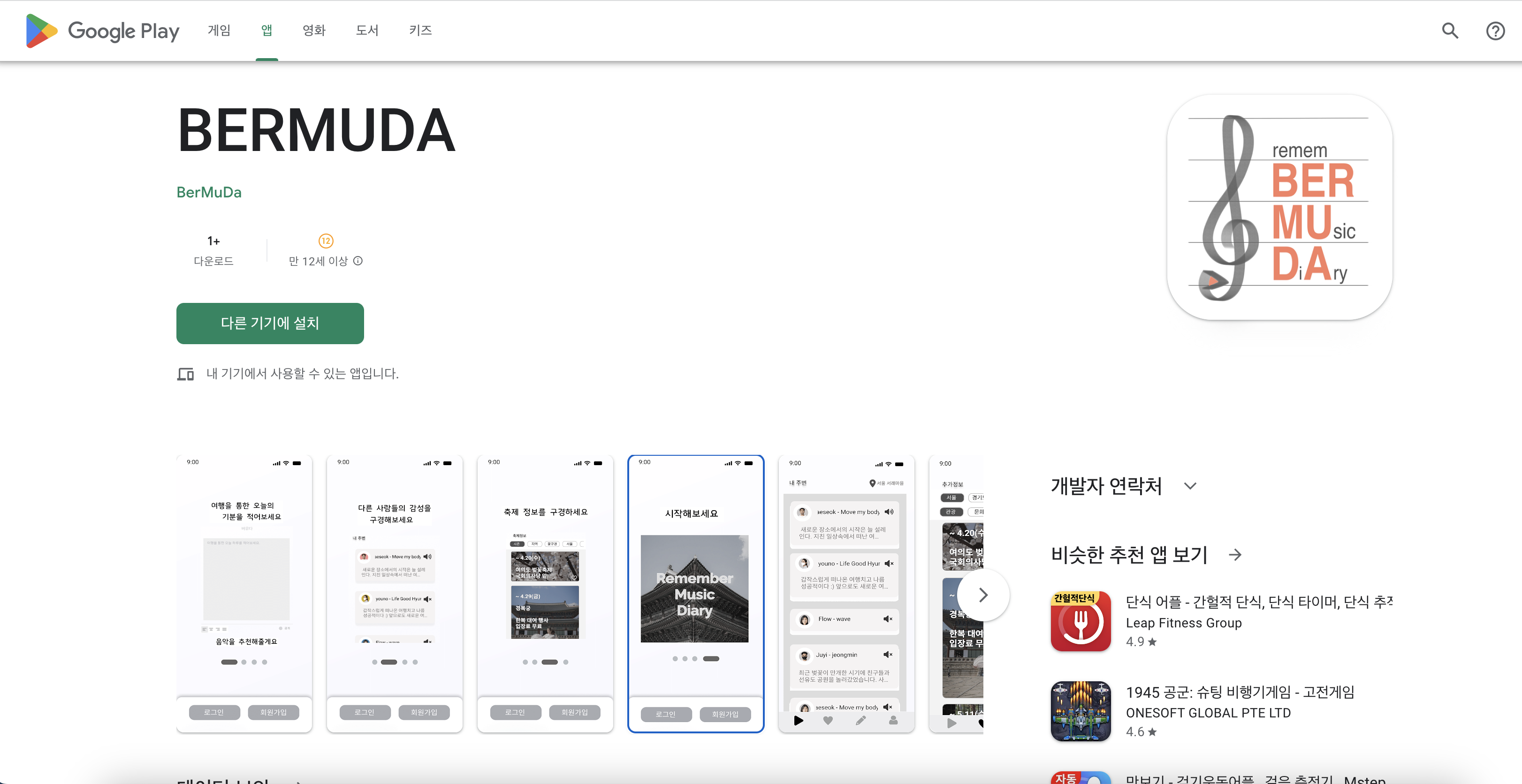 'BERMUDA'는 사용자가 일기작성시 감성분석을 통하여 알맞은 음악을 추천해주는 Application 이다. 또한 위치 정보를 포함하고 있어 주변에 있는 다른 사용자의 감성을 함께 공유할 수 있다.
