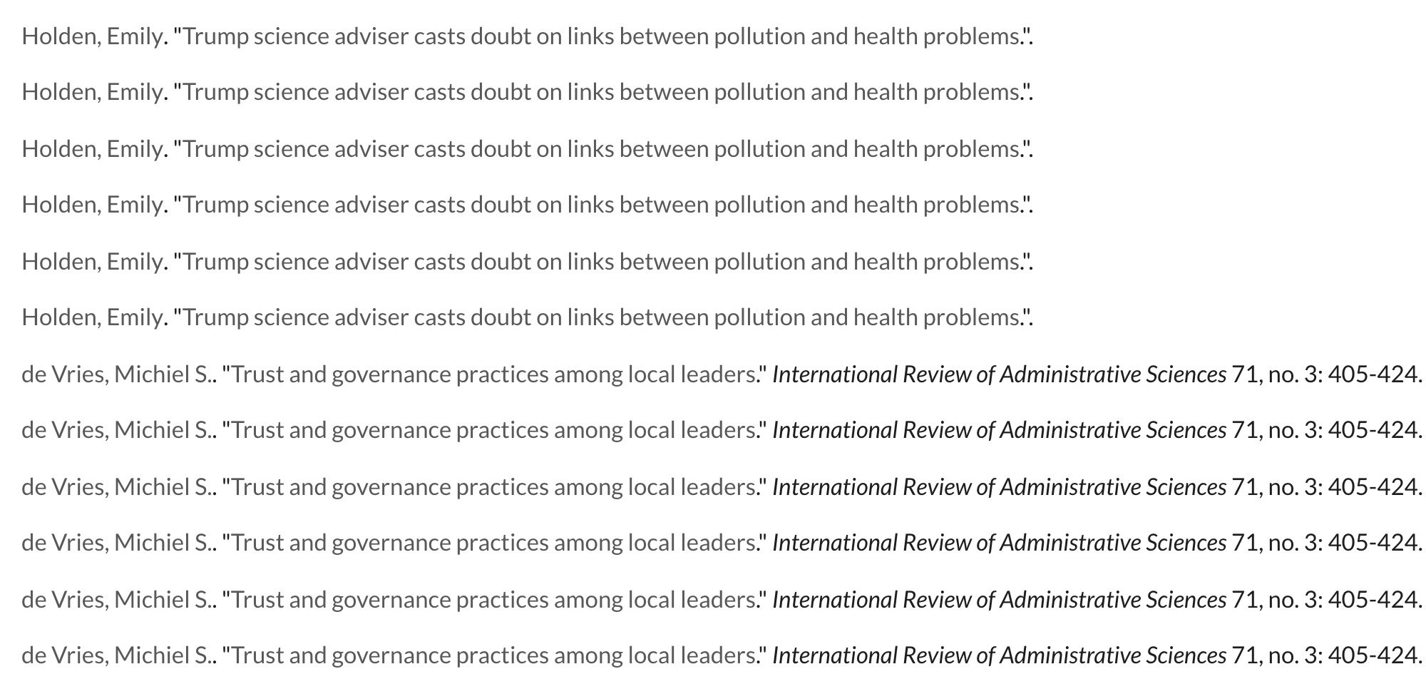 not sure what this is or when it started, and it does not seem to apply to any other instance except for theasthmafiles.org, but on that site there are exactly 6 identical entries for every bibliography item; i only noticed this when I added one yesterday and went to add it to an artifact: