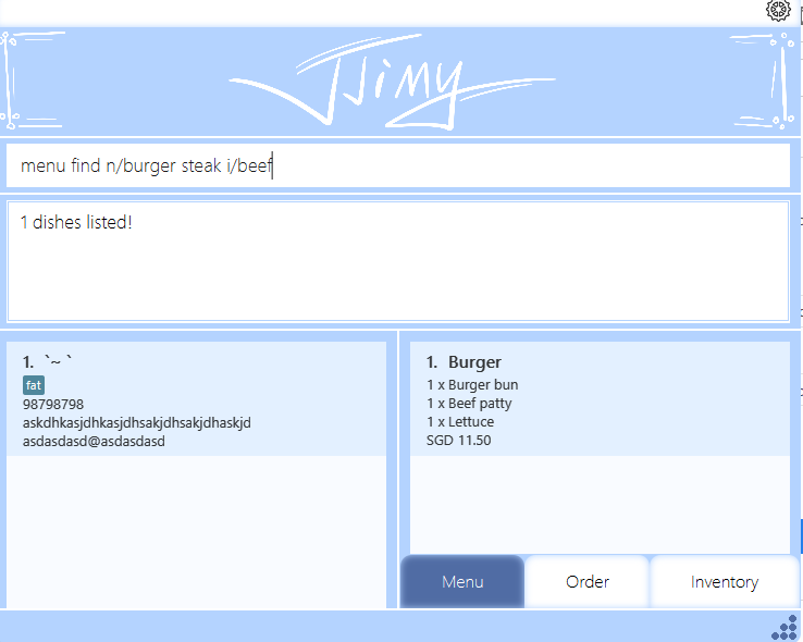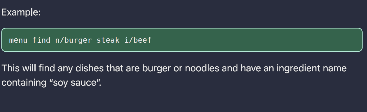 Used the given command and did not find burger or noodle with an ingredient named "soy sauce". Instead found burger with an ingredient named "beef patty"