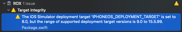 Swift Packages require a deployment target of iOS 9 or above but this package is currently set to iOS 8 which causes a warning.