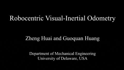 - Zheng Huai and Guoquan Huang, Robocentric visual-inertial odometry, IEEE/RSJ International Conference on Intelligent Robots and Systems (IROS), Madrid, Spain, Oct 1-5, 2018: download.