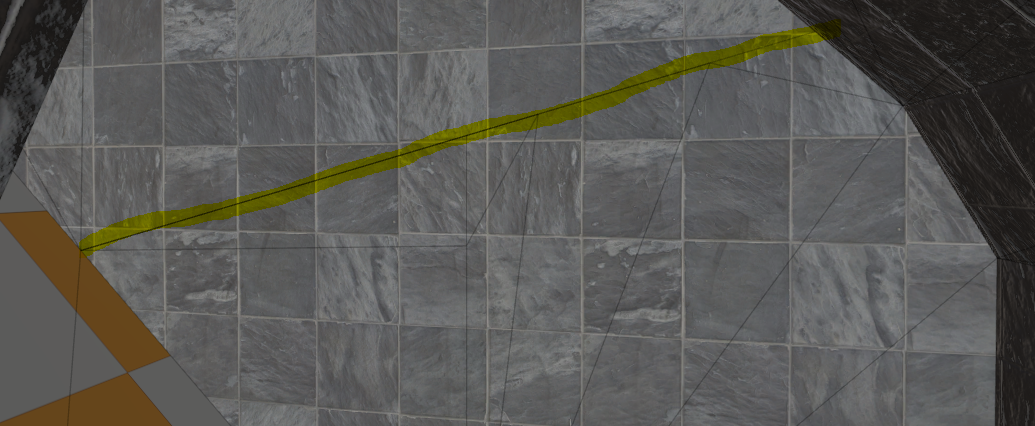 It's not that simple. You can try out this PR, the algorithm works now. There's a whole bunch of foreach loops and LINQ queries that may be too slow and there's probably more room for optimization beyond that. The "is vertex on an edge" check uses several square roots which are slow. It's all just slow. Like you can see in this image the highlighted vertex isn't connected to anything, it's just kinda close to the edge, you can't weld it to anything, you have to split that edge and then weld the vertex onto it - which is easier said than done because all polygons are triangulated individually in 2D space... yeah. But I found a way and it works so all that's left is optimization. Sadly SabreCSG, especially subtractive brushes, will often create invalid geometry INSIDE of the brushes where you don't see it. 5px thin faces, little ears sticking out of the floor into the walls in random places. It's ugly and those invalid faces will show up as flickering pixel artefacts too. Not because they aren't connected properly, because they are- after my algorithm is done, but because Unity's MSAA causes white outlines on all objects because Unity. Those odd random faces sticking out will cause outlines throughout the mesh. So if you see them, disable MSAA and they will disappear. Sadly this was very misleading and led me to painstakingly fiddling with my algorithm without realizing it wasn't even my fault. |