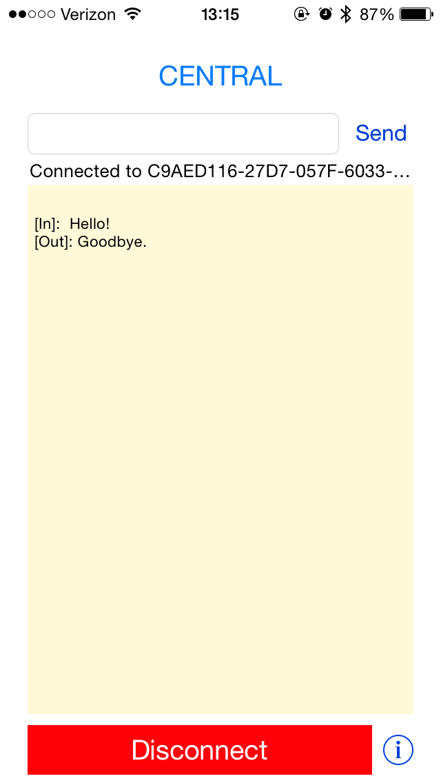 iOSCoreBluetoothTests Testing Core Bluetooth Central and Peripheral Roles Results for transferring 20,000 byte block: From central -> peripheral: 2.47 Kbps (64.59 sec) From periphral -> central: 11.43 Kbps (14.00 sec)