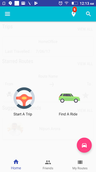 a. Click on the fab on the home tab and select the "Start A ride" Option