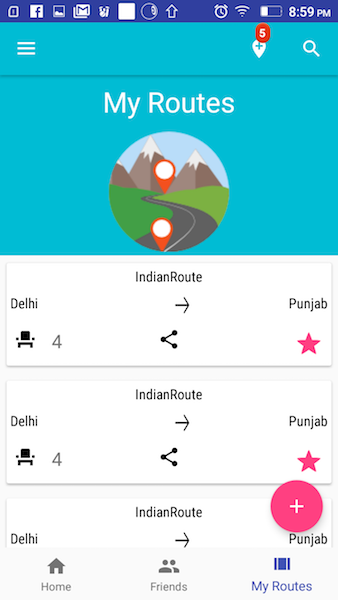 - Click on the Floating Action Button on Routes Tab to add one of your daily route