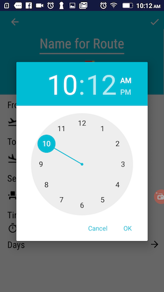 - You can select the time (Tap where mentioned) and select the days of travel(Tap on the arrow beside days)