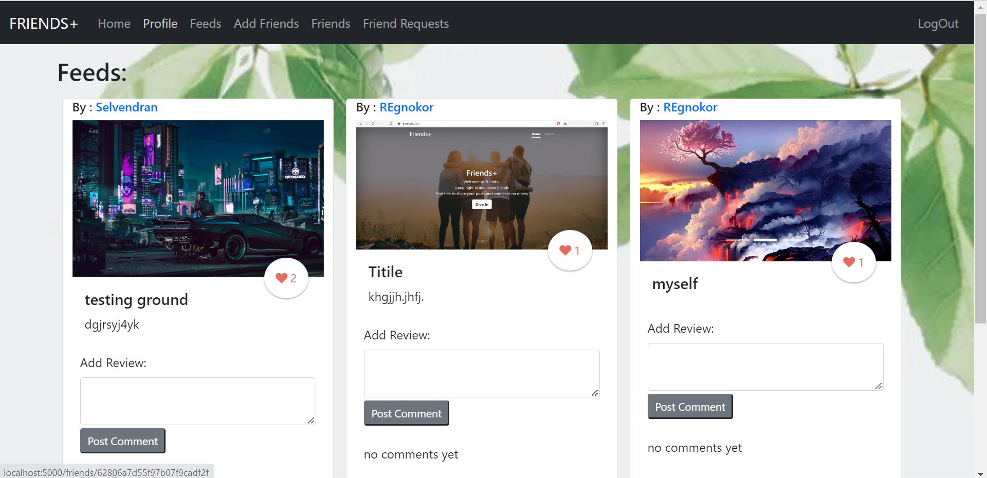 - Like and comment on other's posts