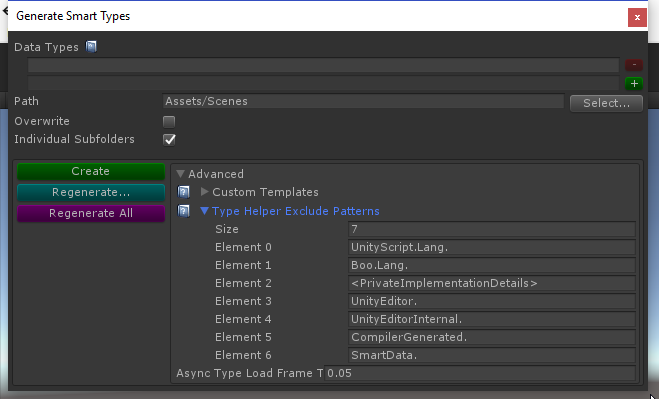 In most projects, you'll find yourself needing lots of other SmartTypes, whether for your own classes/structs, Unity types or those from other plugins.