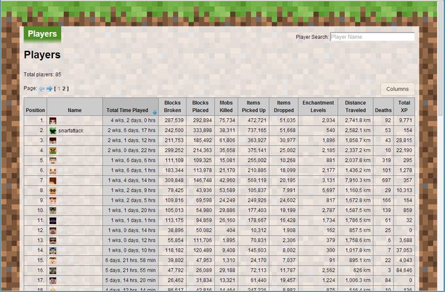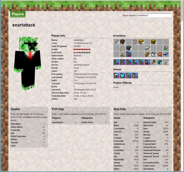 Inquisitor collects player information and statistics and stores them in a MySQL database. It also provides a built-in web server and templating system to allow viewing stored data over the web.