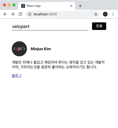 :username 이 있는 자리에 여러분이 조회하고자 하는 사용자의 유저네임 (예: velopert) 를 넣으시면 됩니다. 다음과 같이 말이죠.