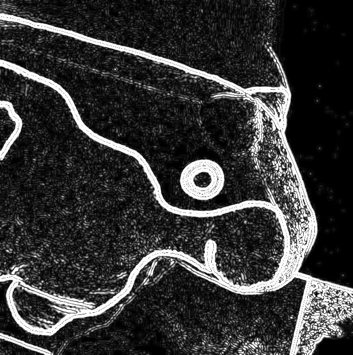 4. Edge response elimination Peaks in difference of Gaussian will have large principle curvatures across the edge but a small one in the perpendicular direction. The ratio of principle curvatures $r$ can be calculated from 2^nd^ order derivatives, which is precomputed for the image. $\frac{(D_{xx}+D_{yy})^2}{D_{xx}D_{yy}-(D_{xy})^2}=\frac{(r+1)^2}{r}&lt;\frac{(r_0+1)^2}{r_0}$ According to the paper, $r_0=10$ is used.
