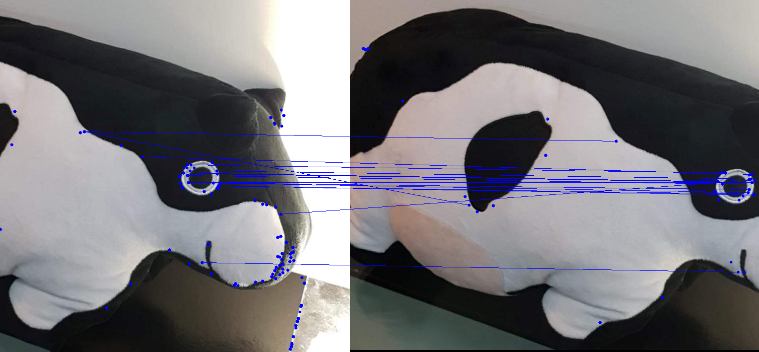 • The paper uses euclidean distance between vectors to determine a match. Only the matches in which the ratio of closest distance to second closest one is lesser than 0.8 are viewed as correct match. In other words, $\frac{v - v_1}{v - v_2} &lt; 0.8, \forall v_2$